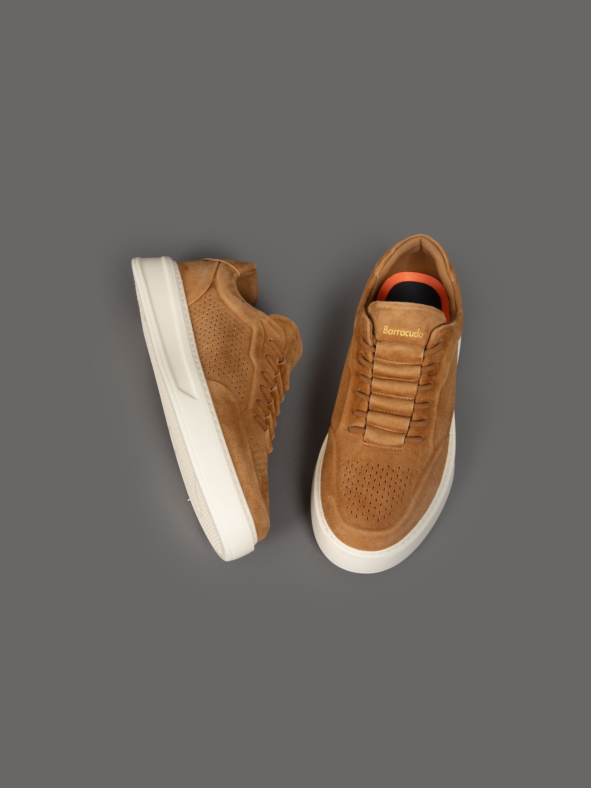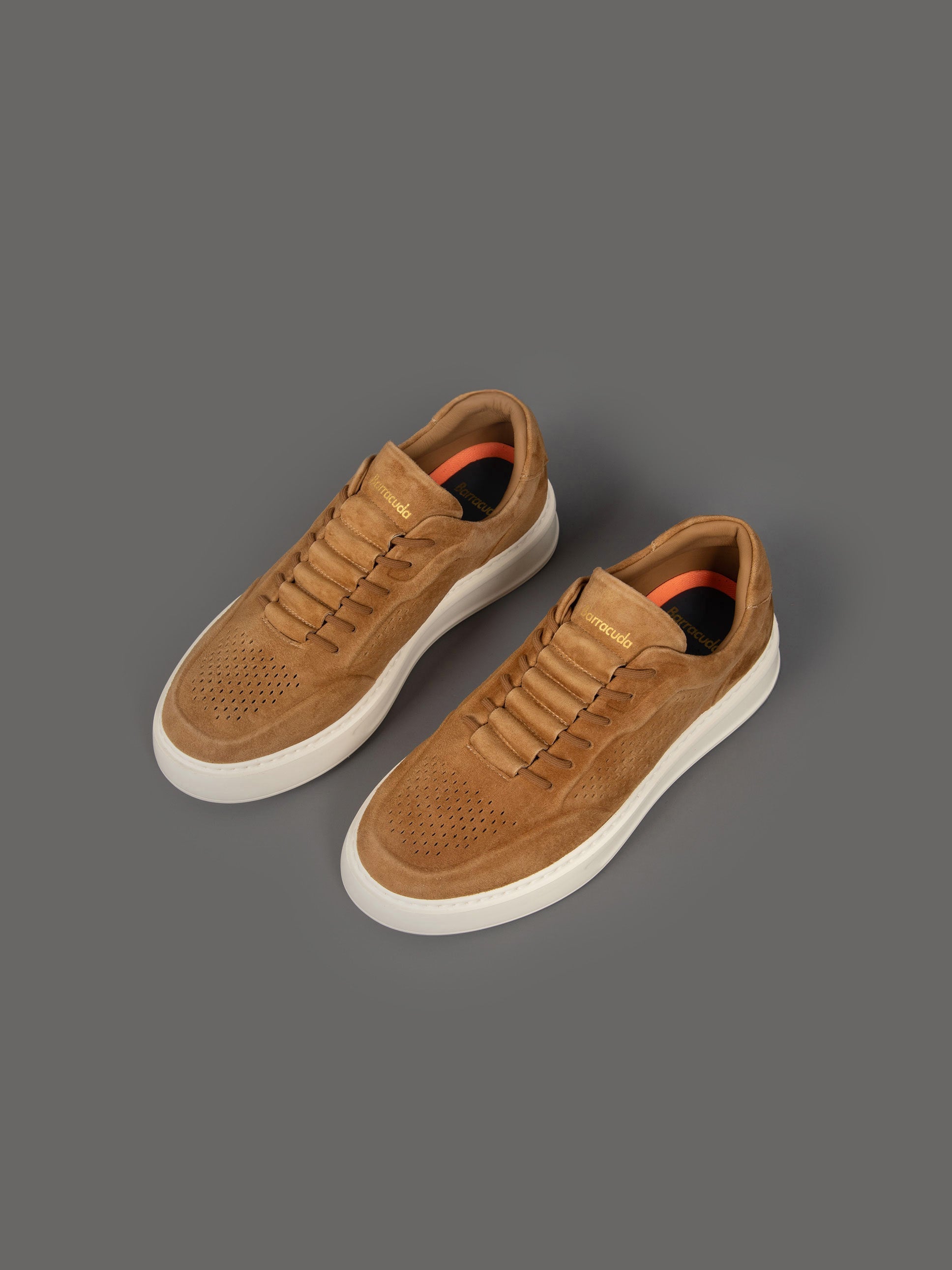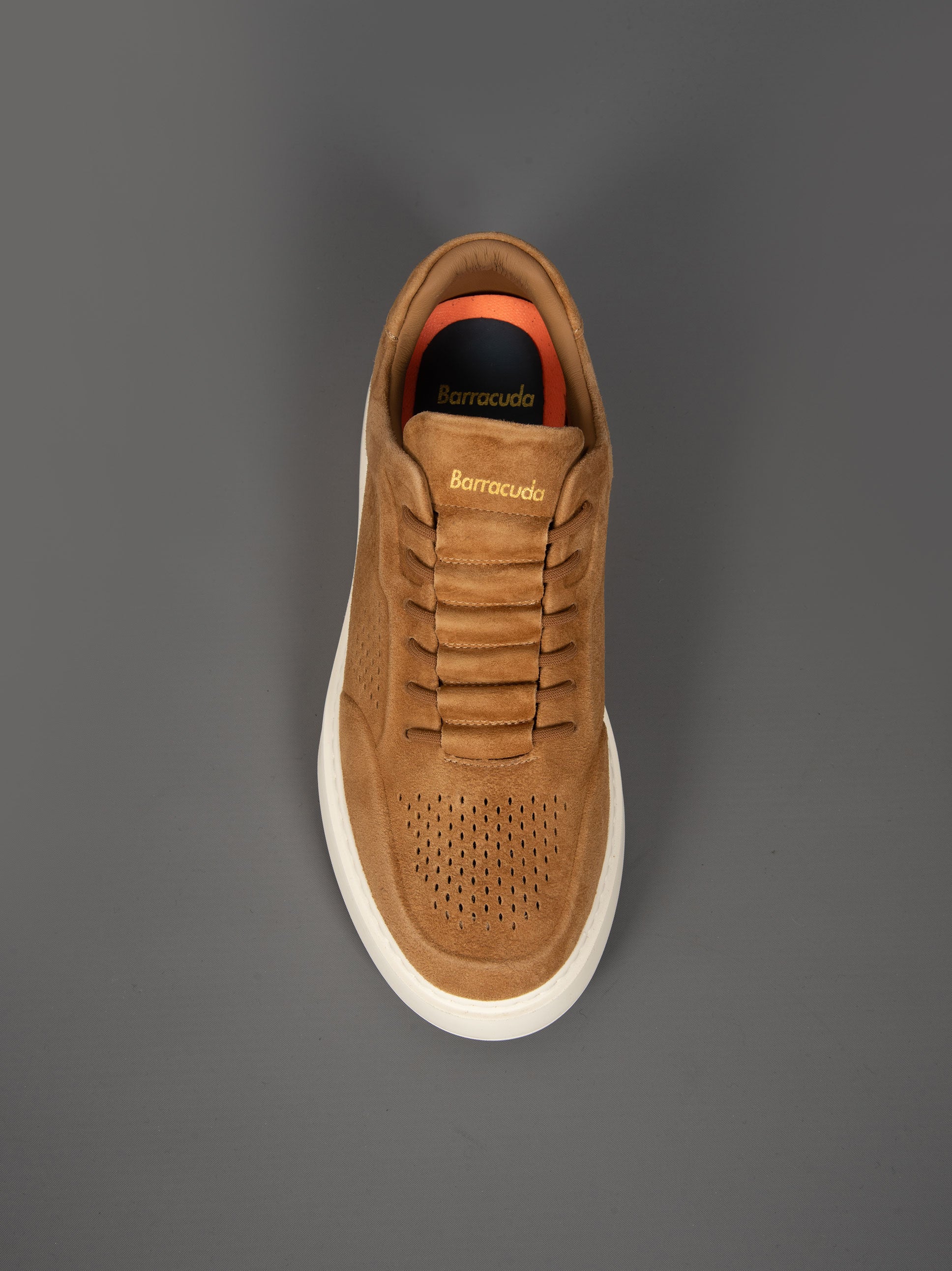 • Tomaia traspirante realizzata in camoscio traforato.