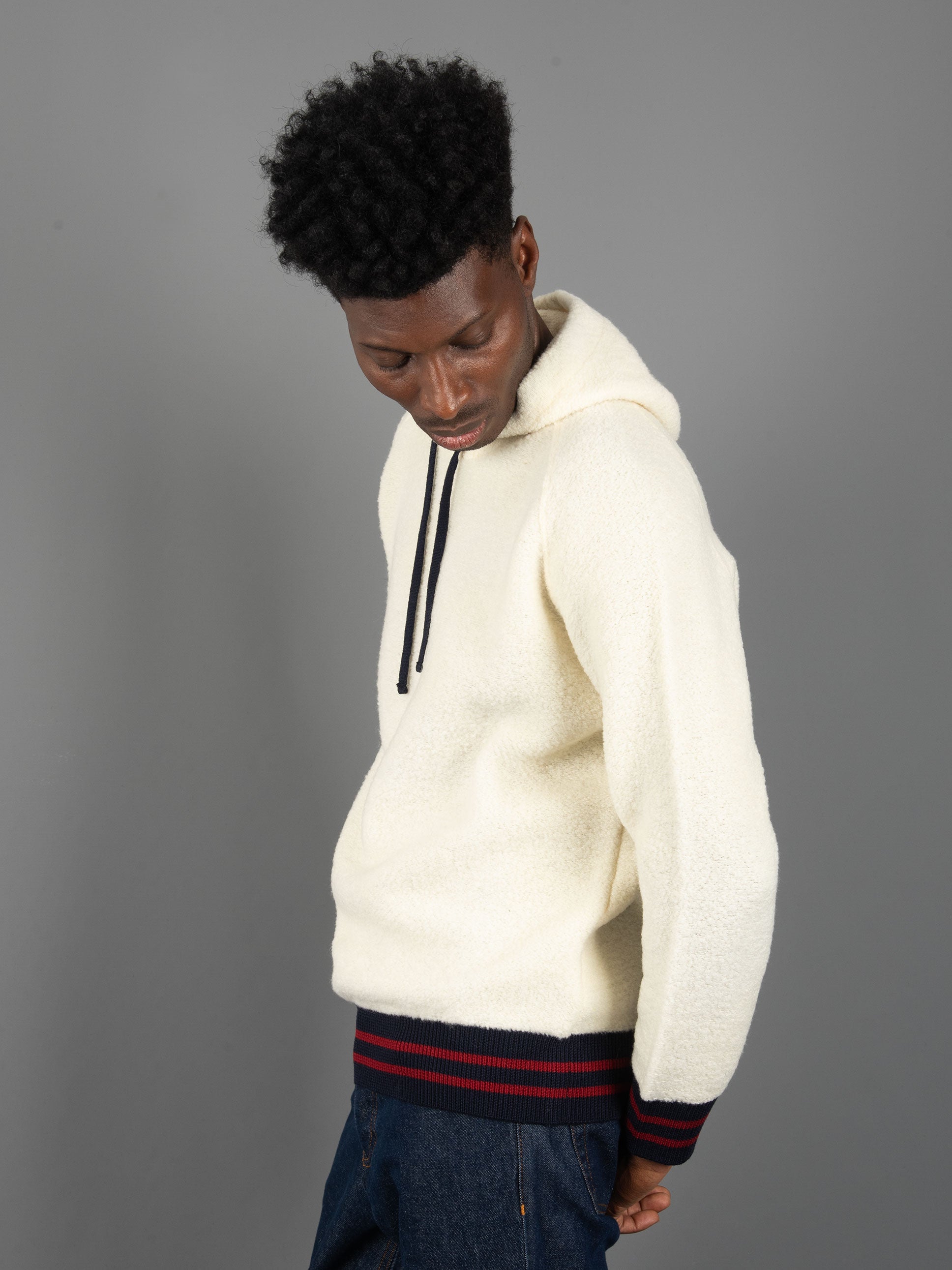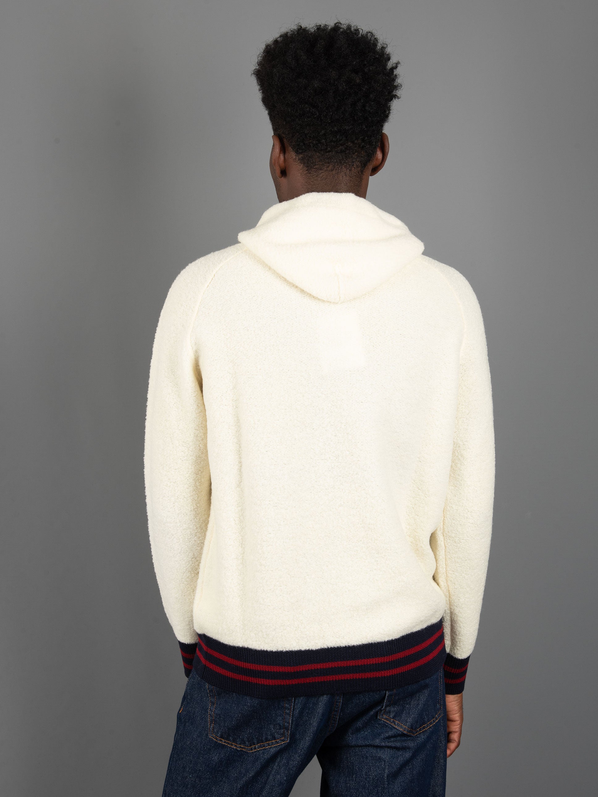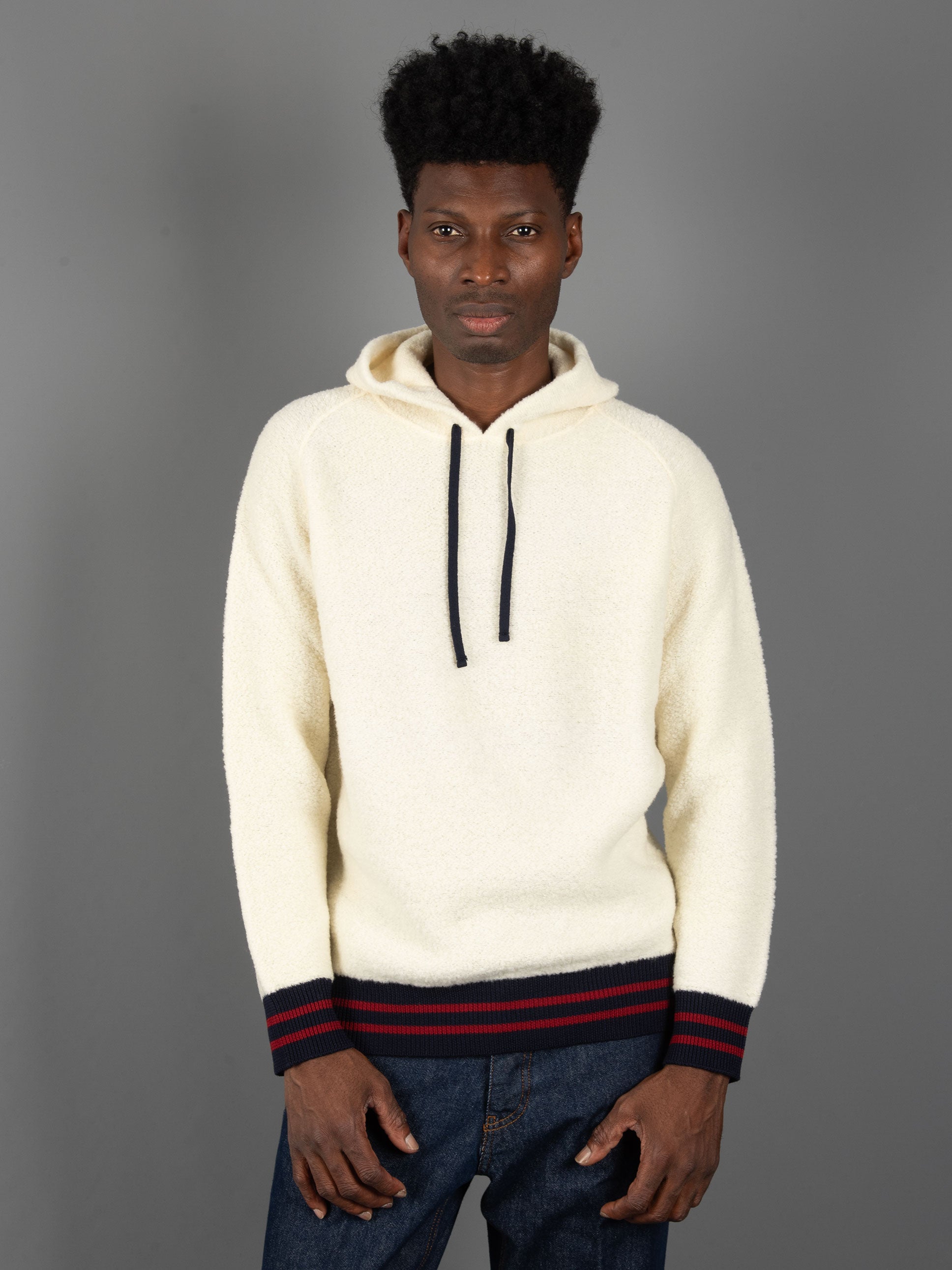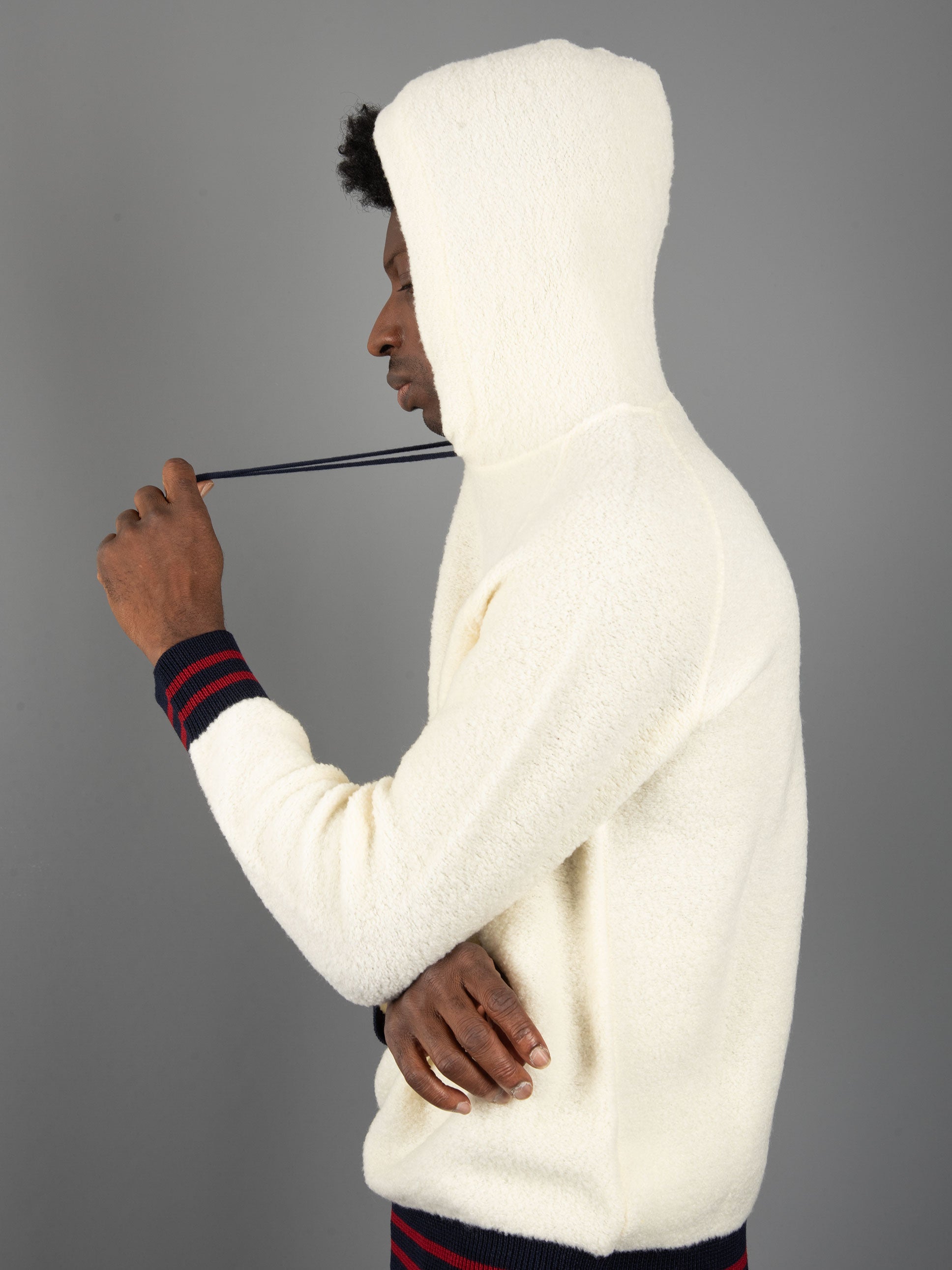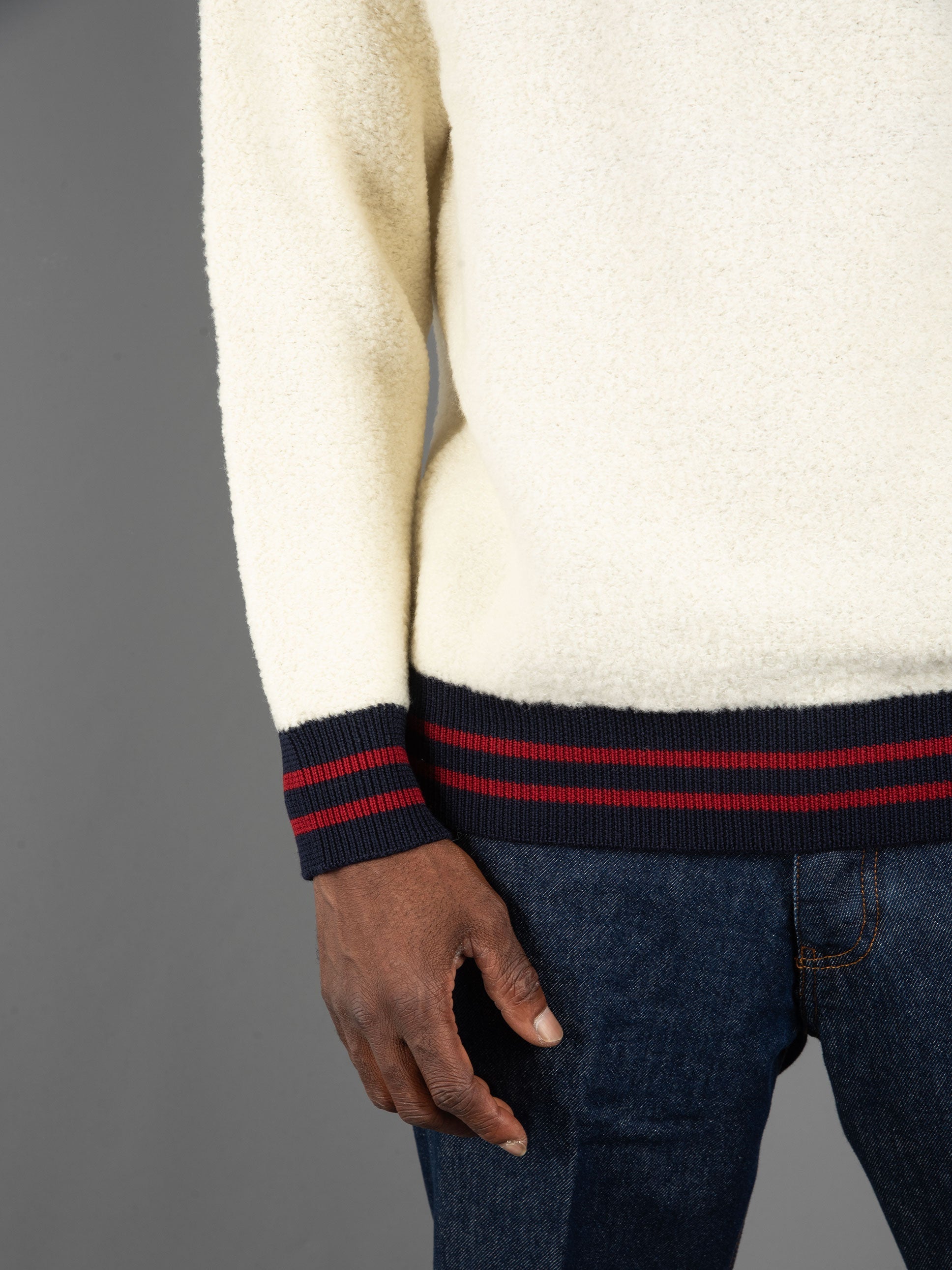 • Rifinita con fondi e polsi a costine blu e bordò.