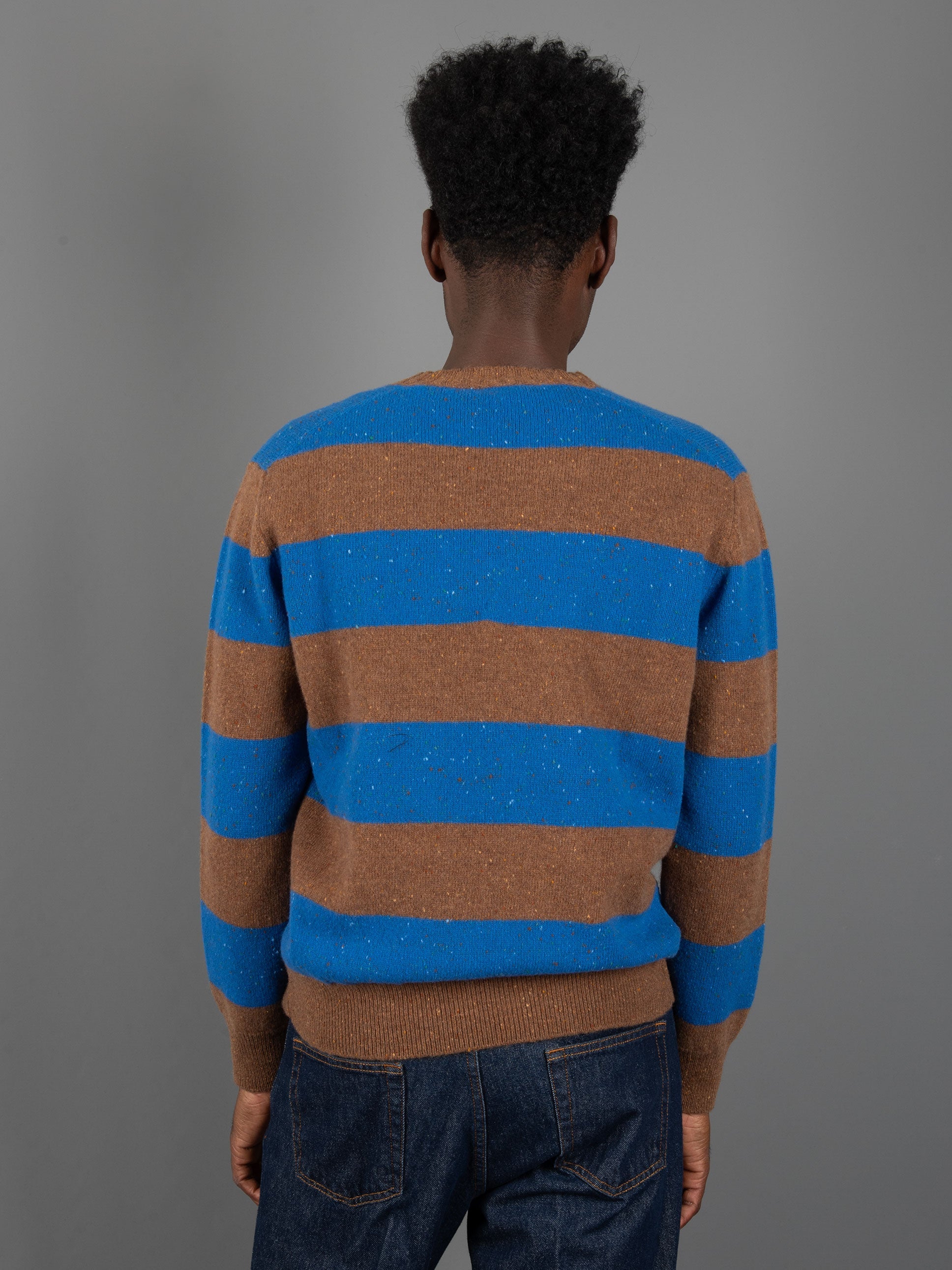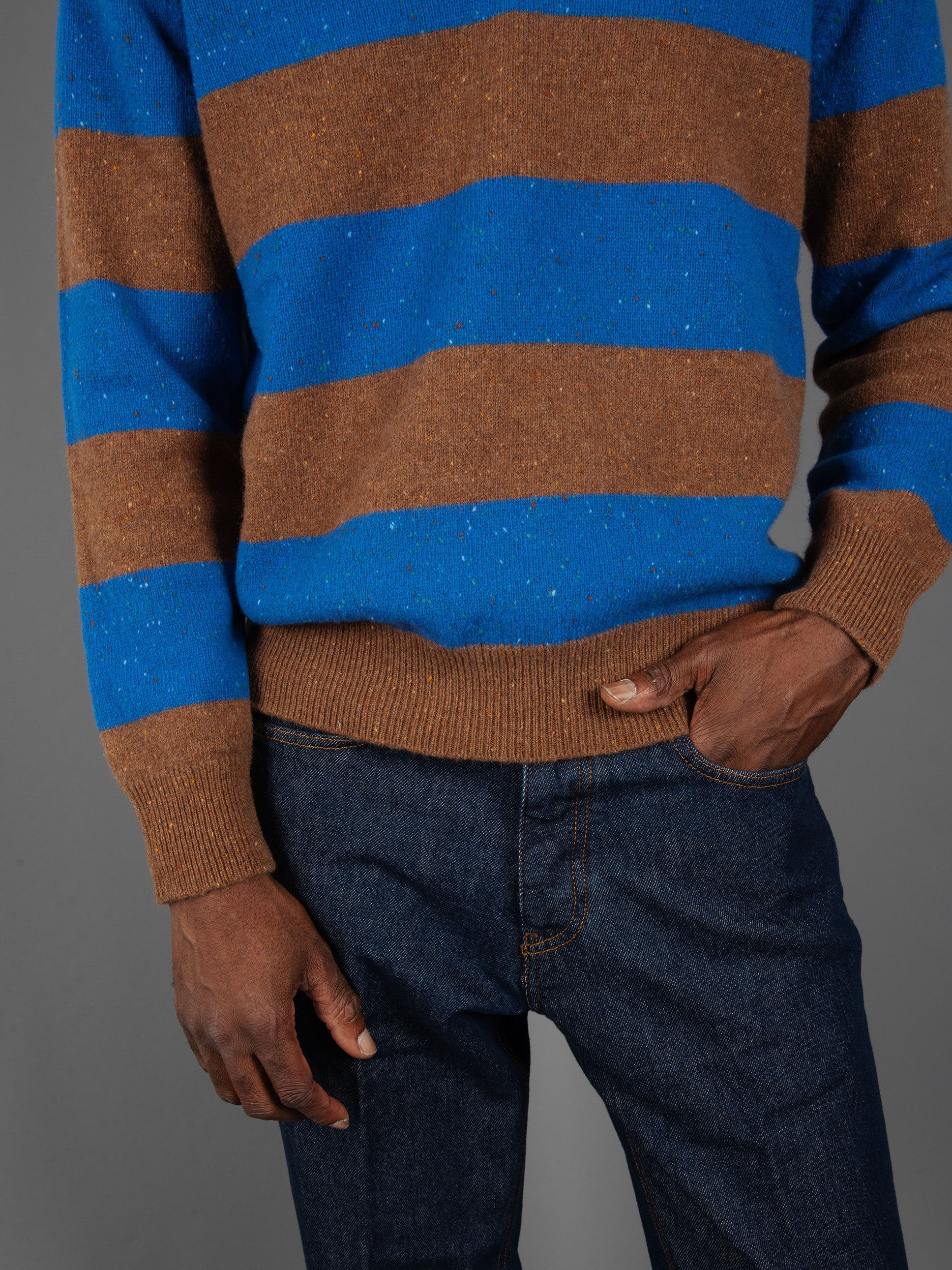 - Motivo a righe nei colori Cammello e Azzurro.