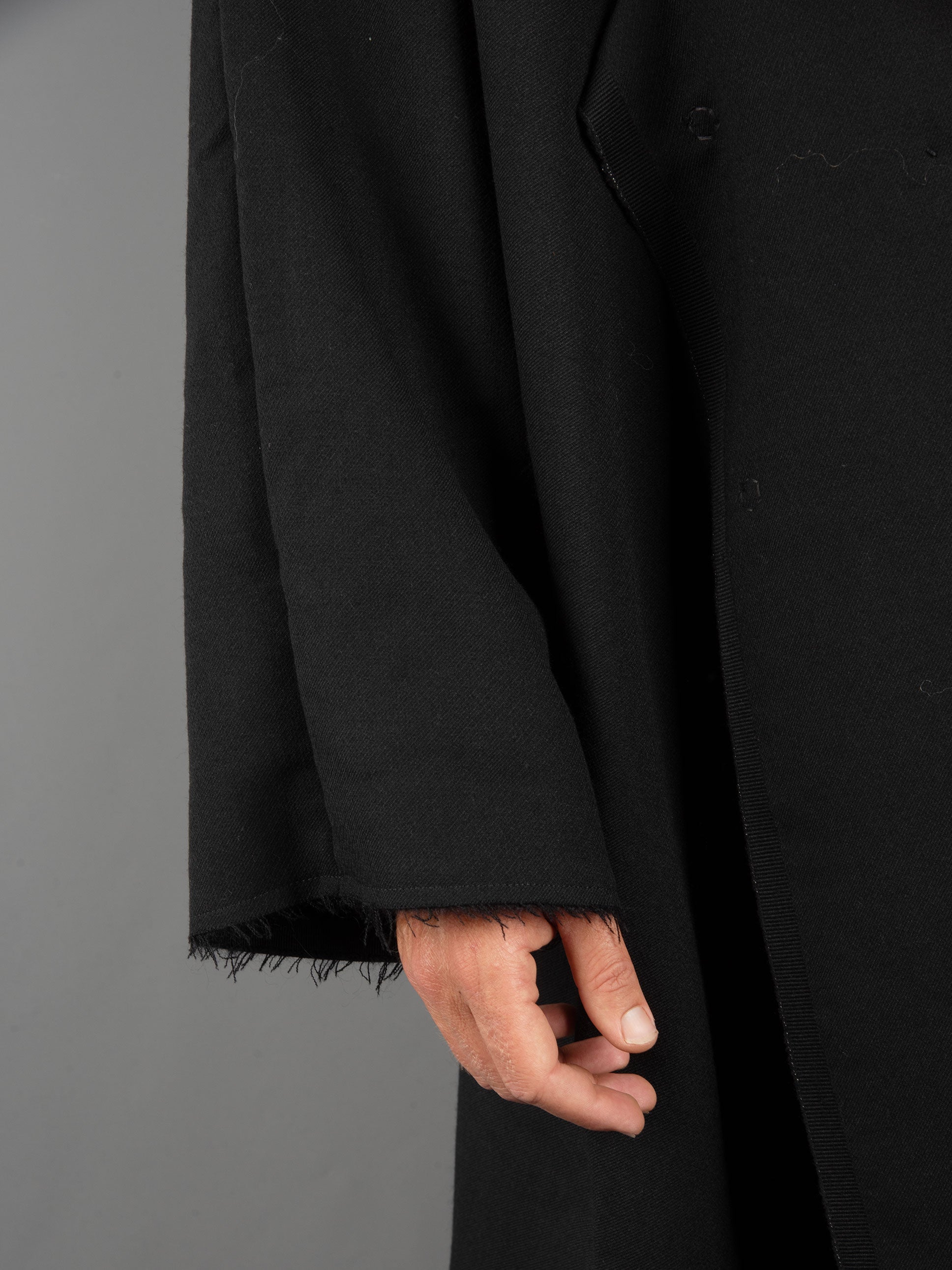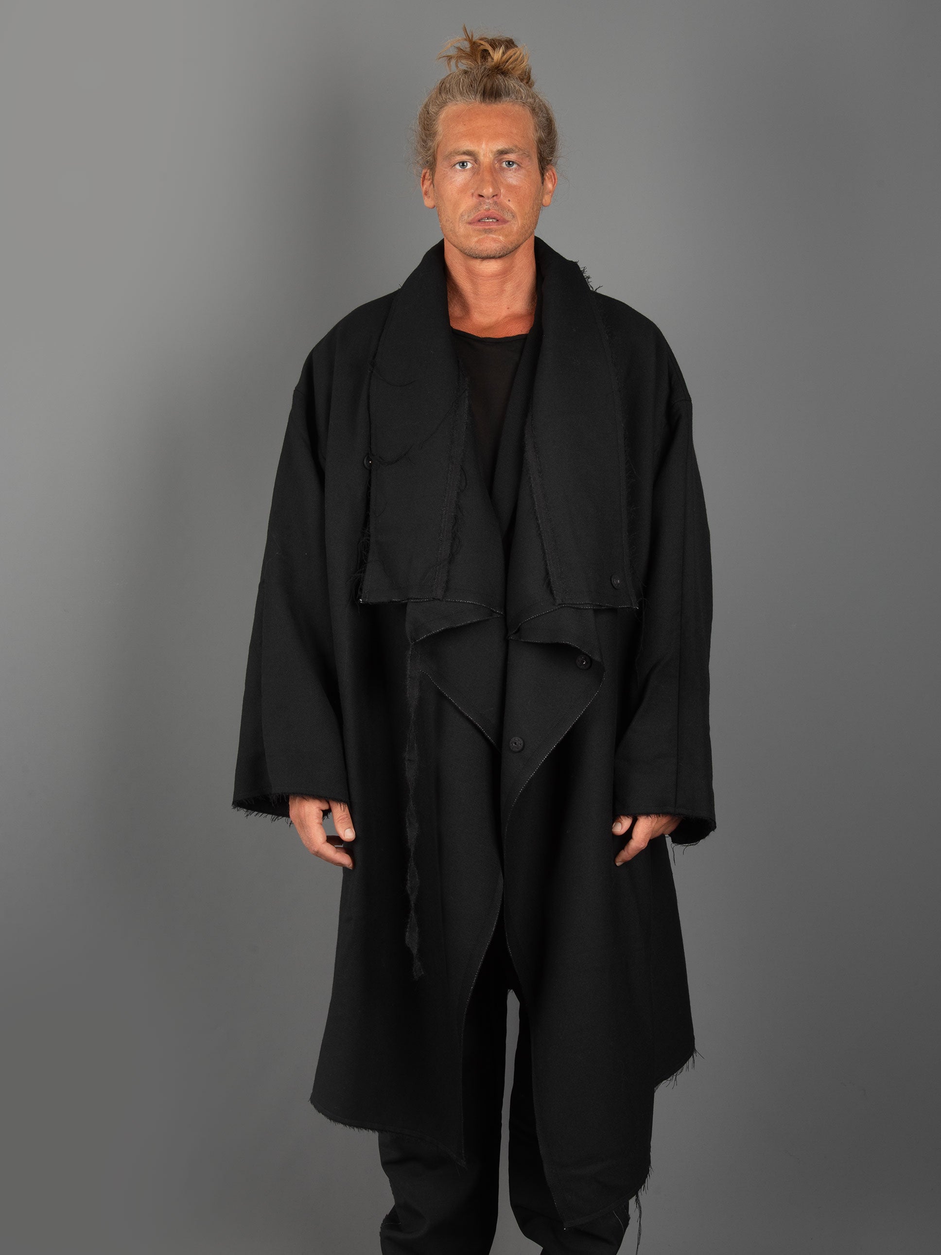 • Saglia di lana, rifinita con fettuccia, cucitura e taglio vivo.