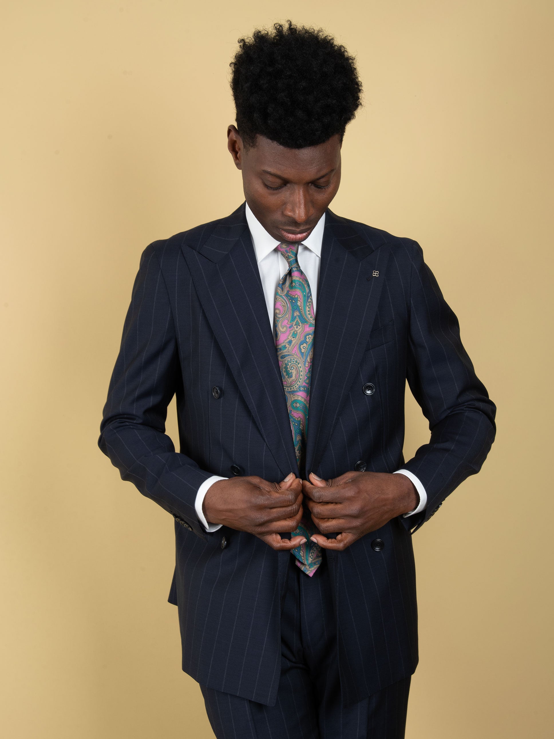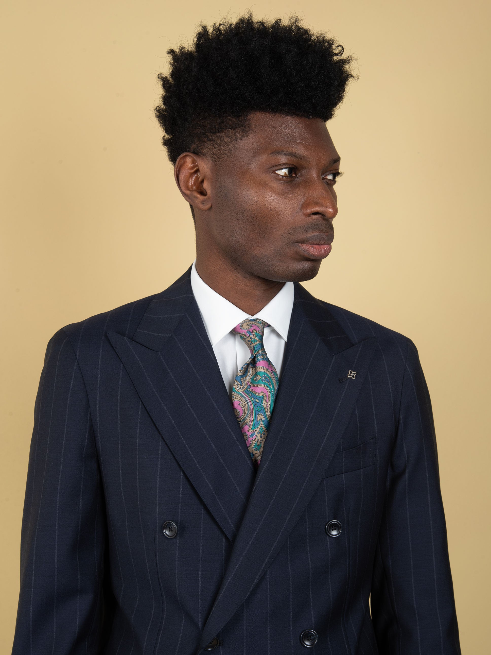 - Allacciatura classica doppio petto con rever lancia lunga.