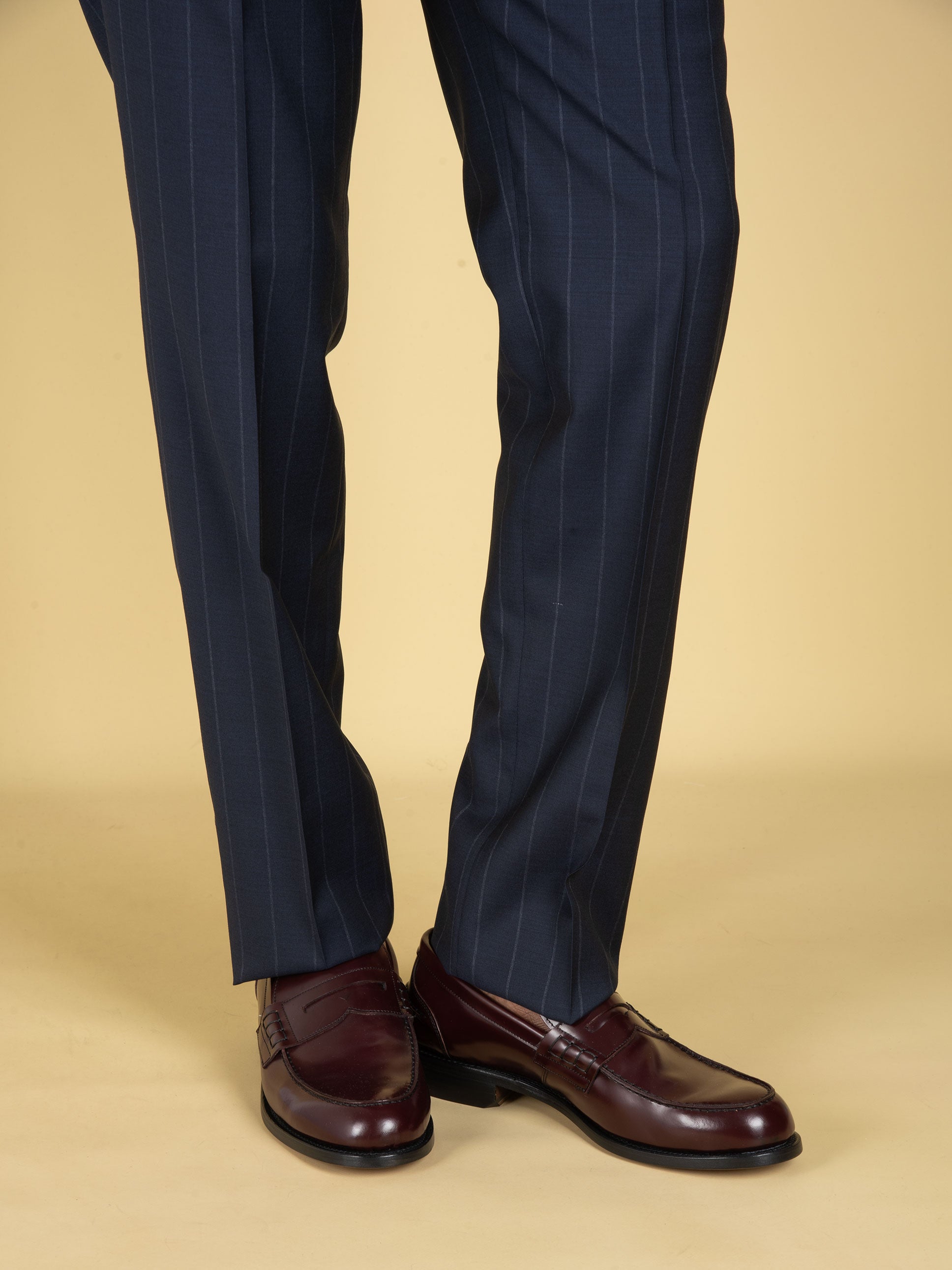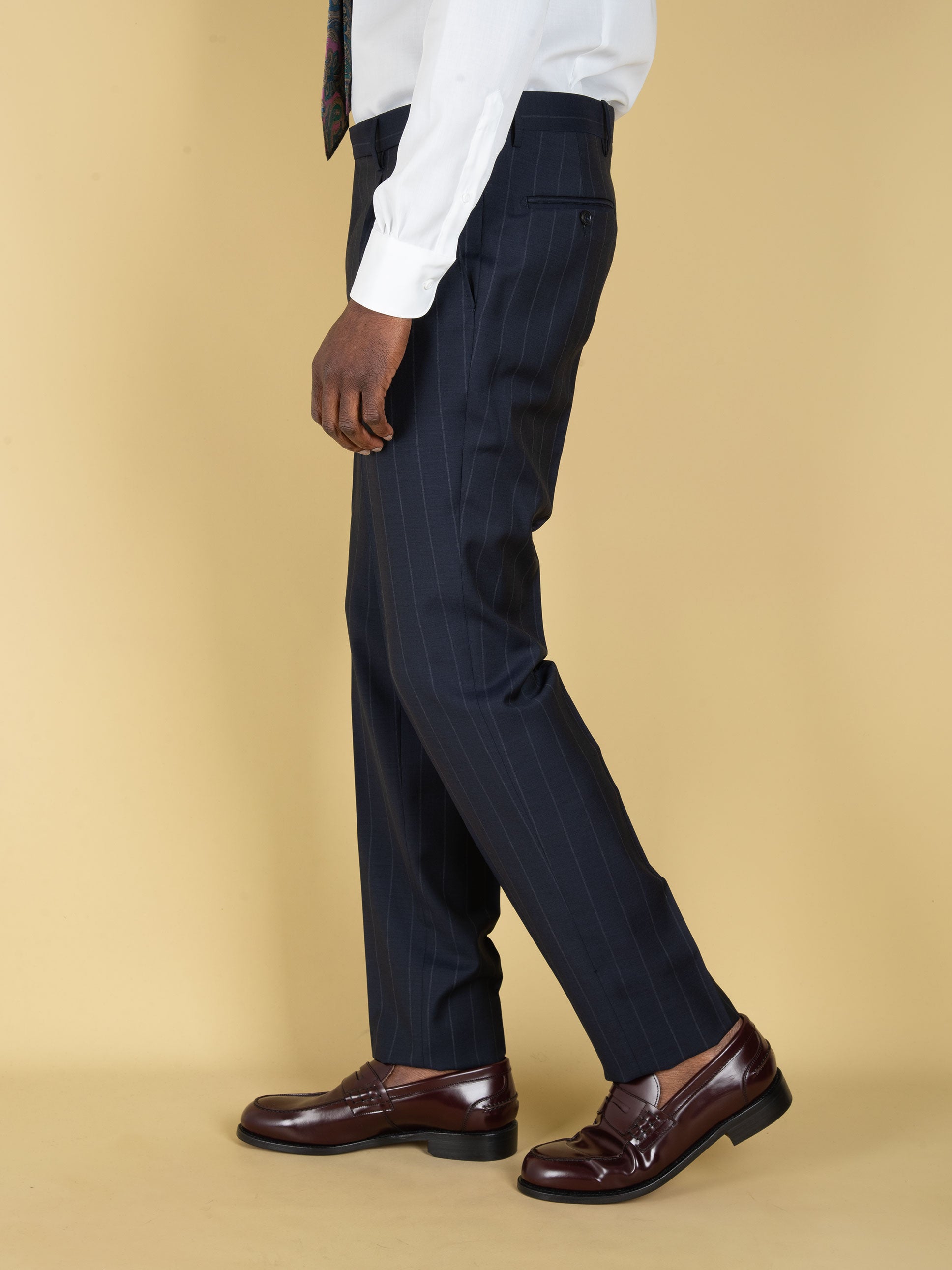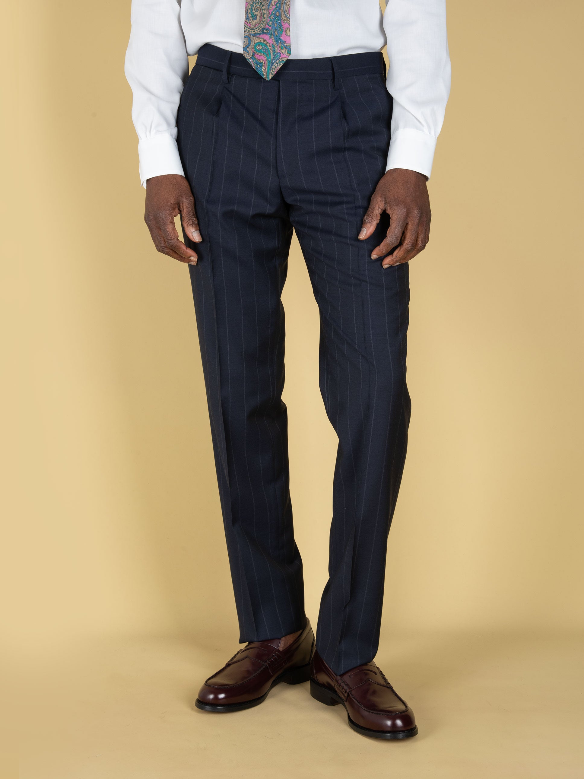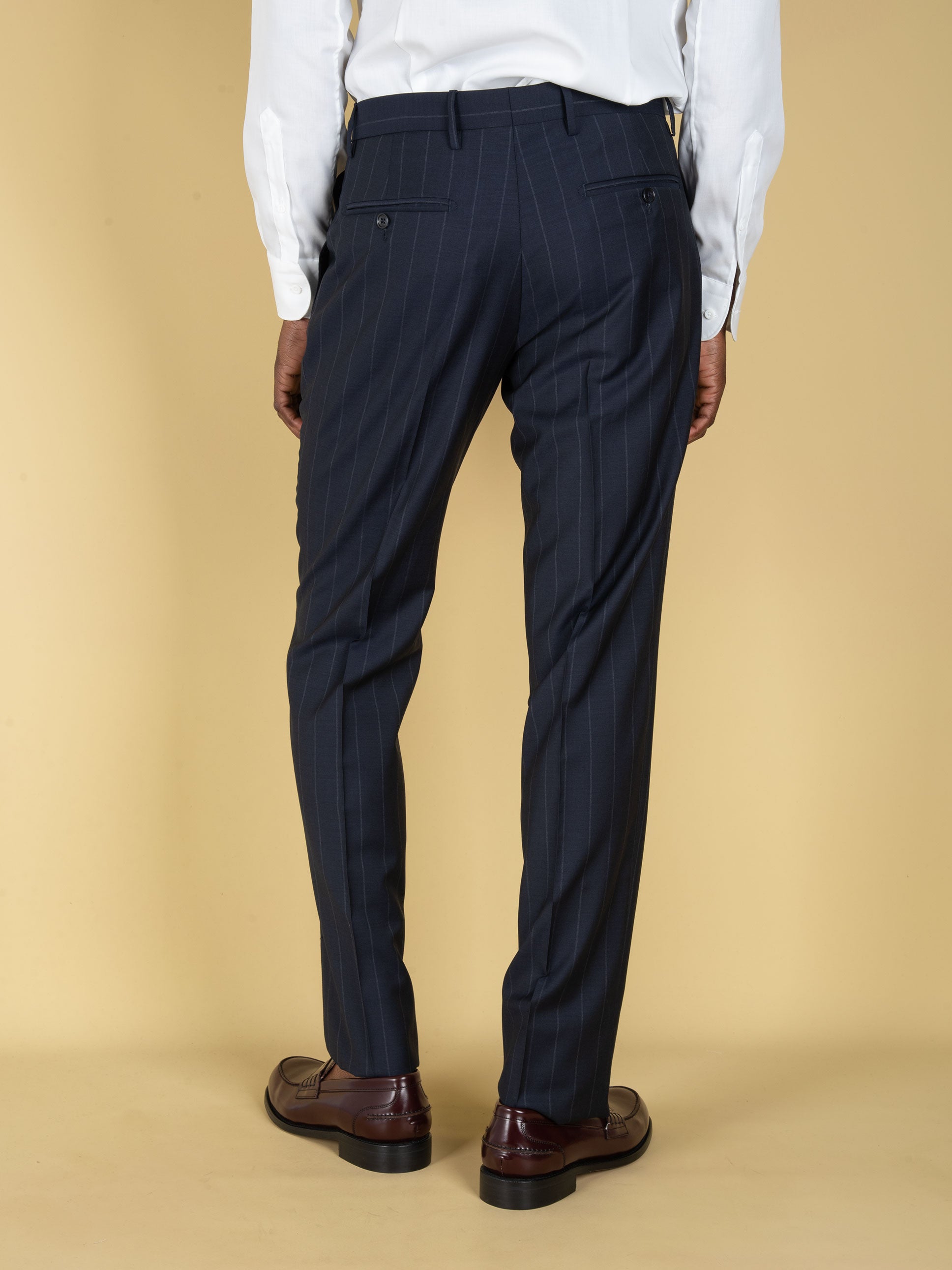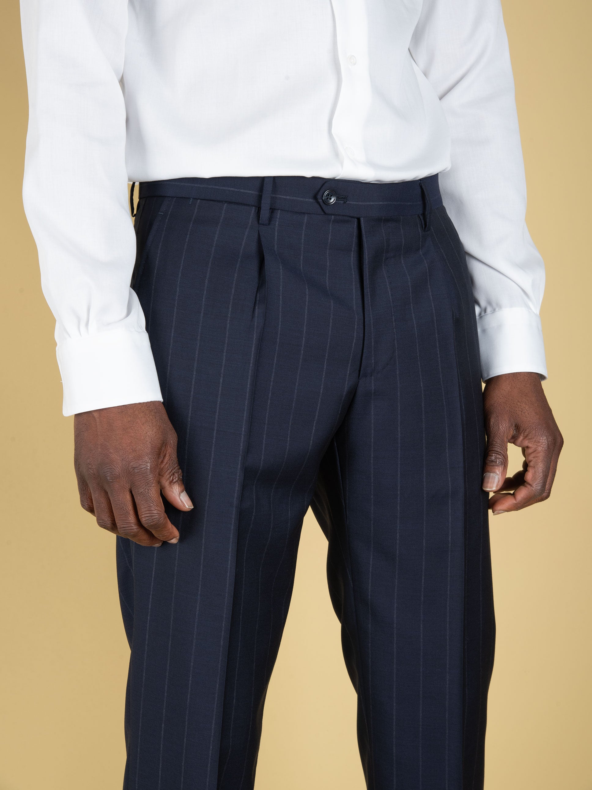 - Pantalone con una pence, tasche laterali e filo sul retro.