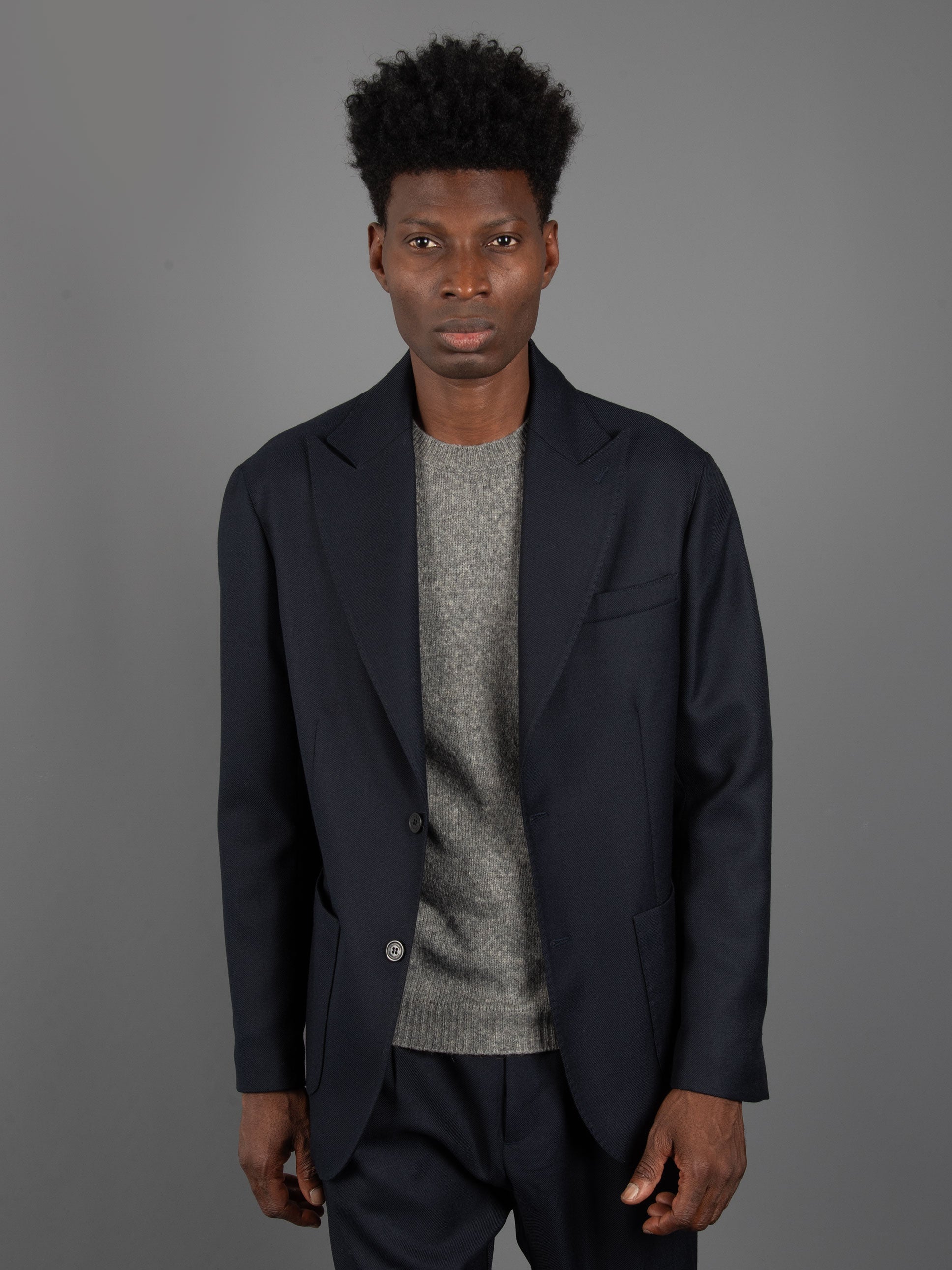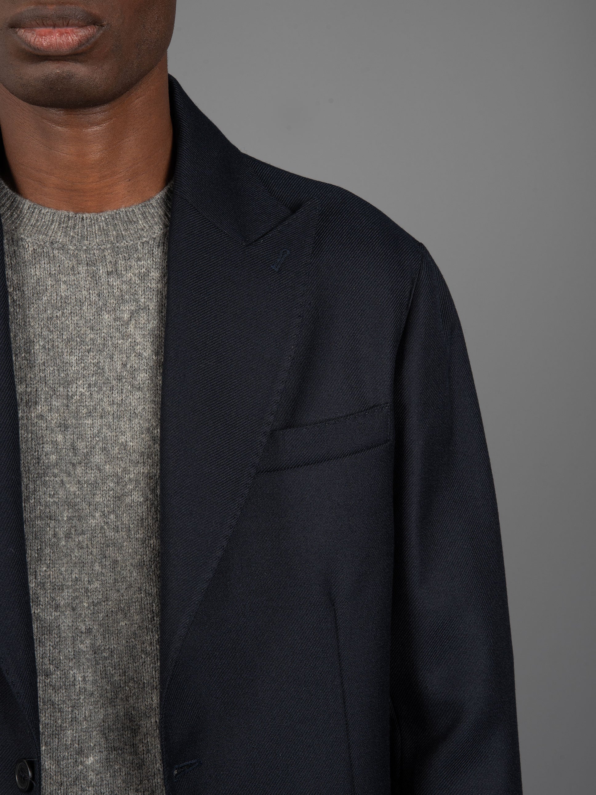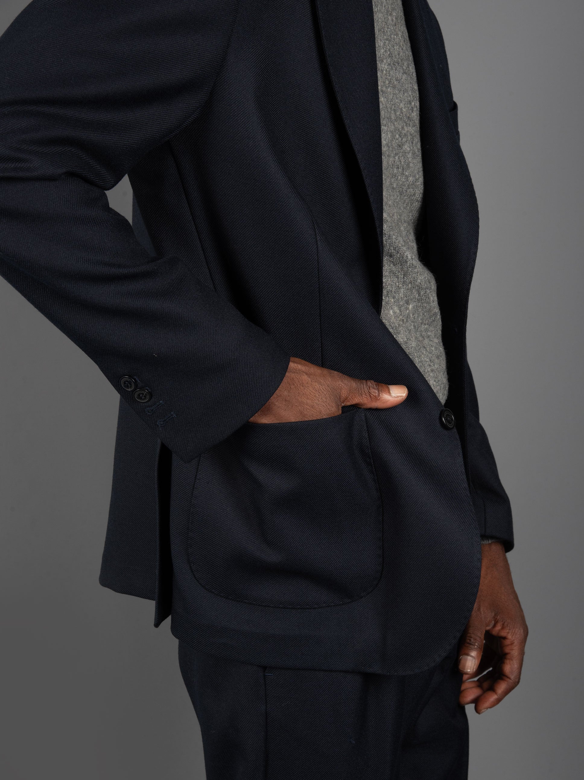 • Giacca semi sfoderata in misto lana lavorata in diagonale.