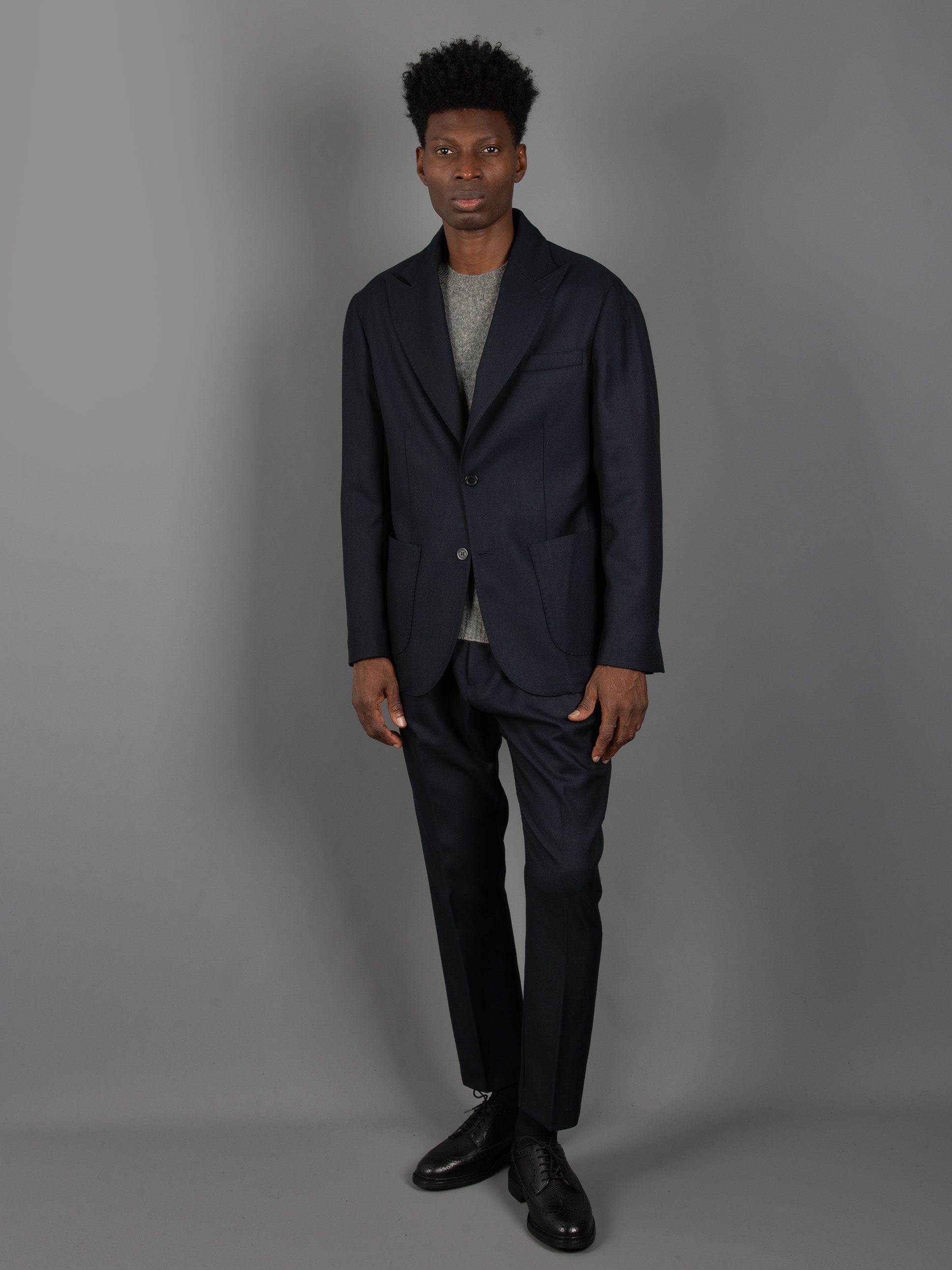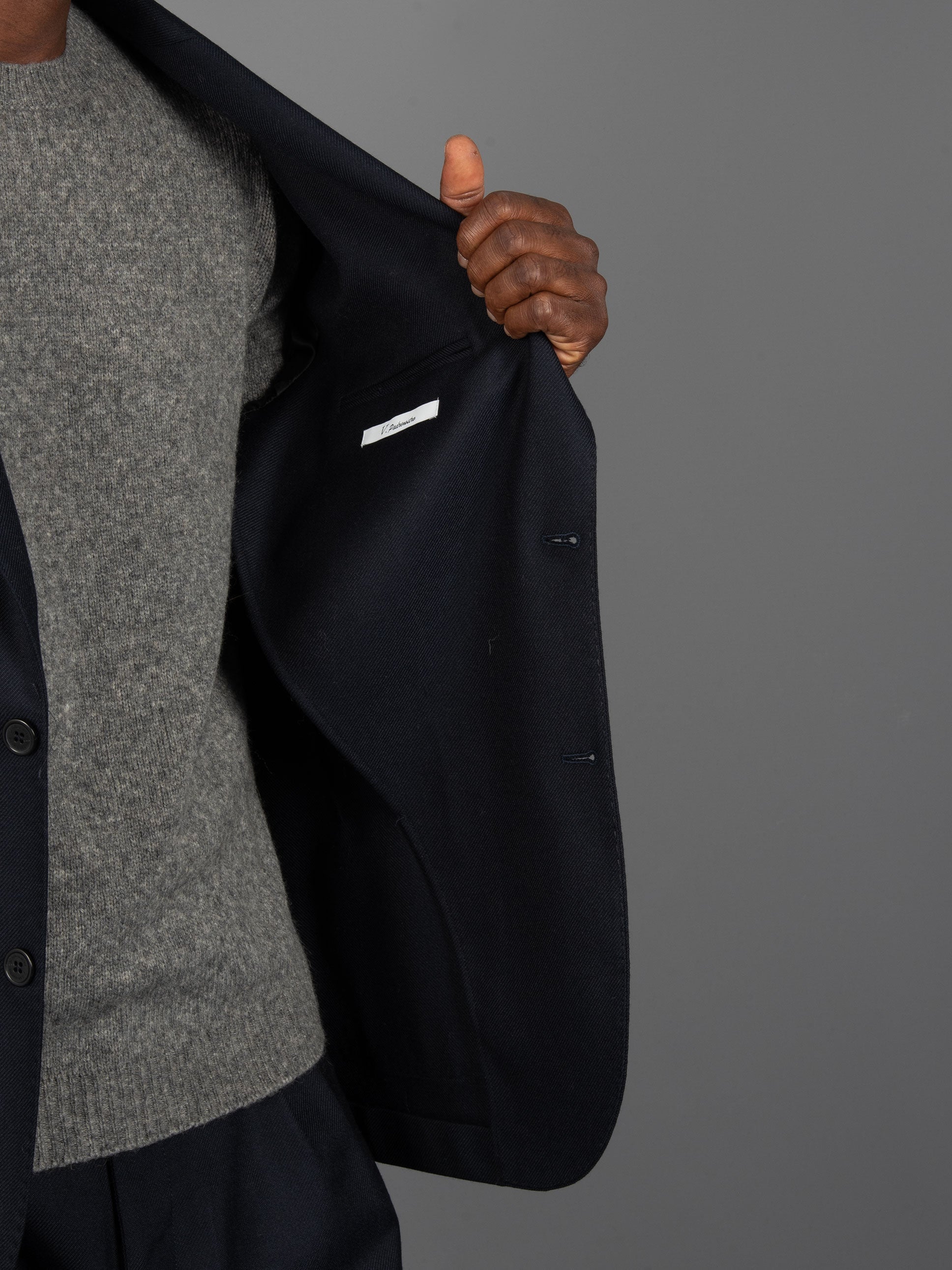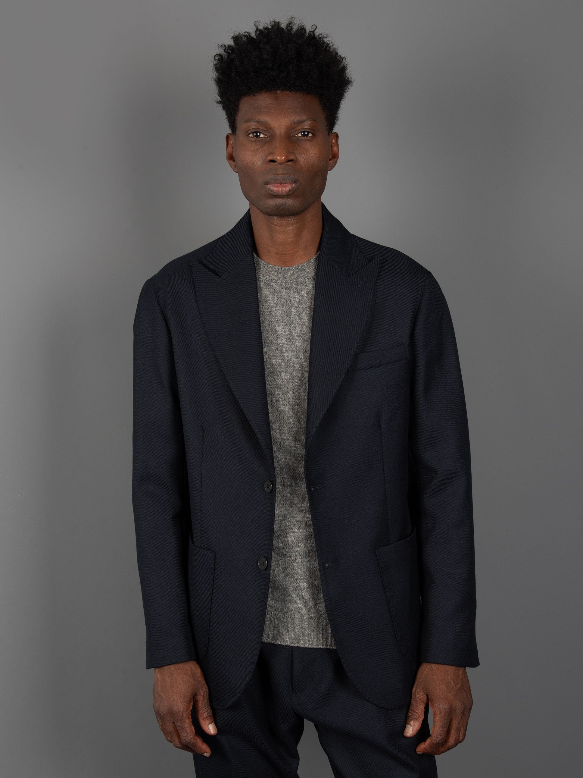 • Giacca semi sfoderata in misto lana lavorata in diagonale.
