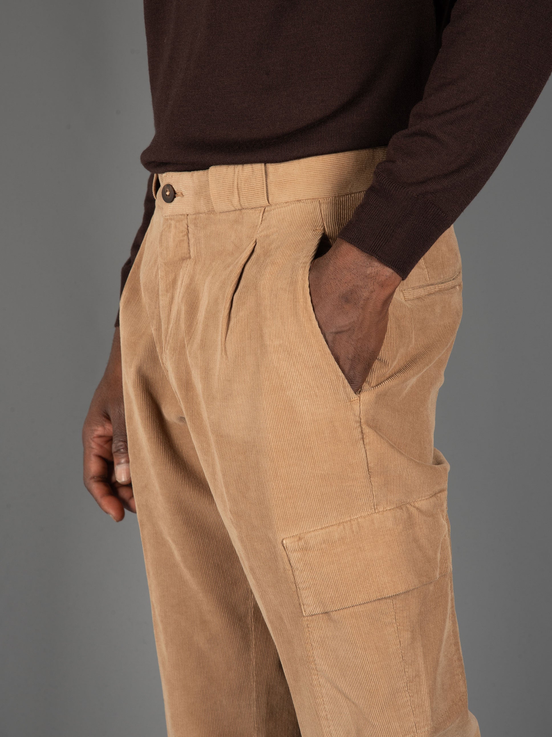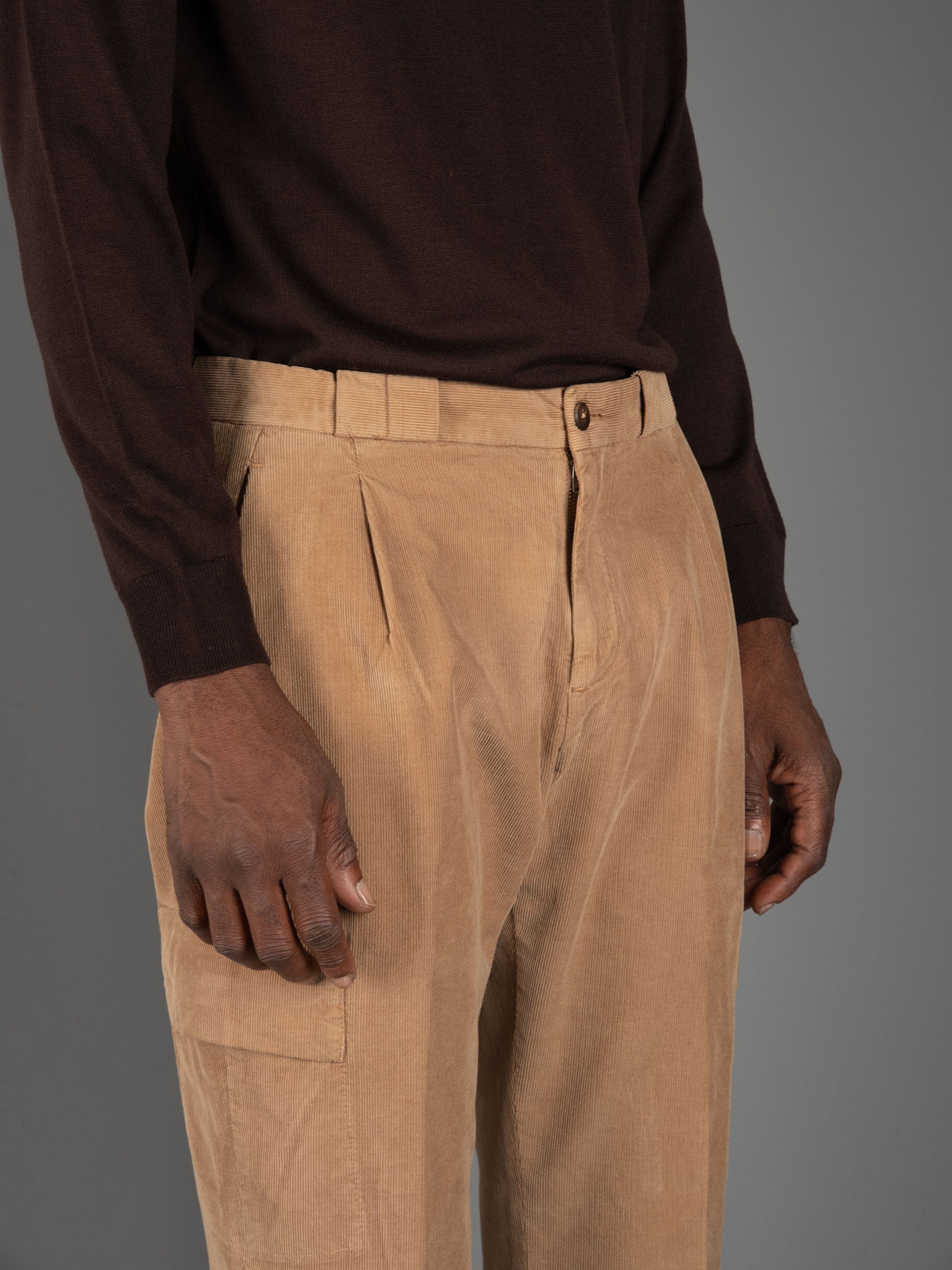 • Pantalone in morbido velluto millerighe.