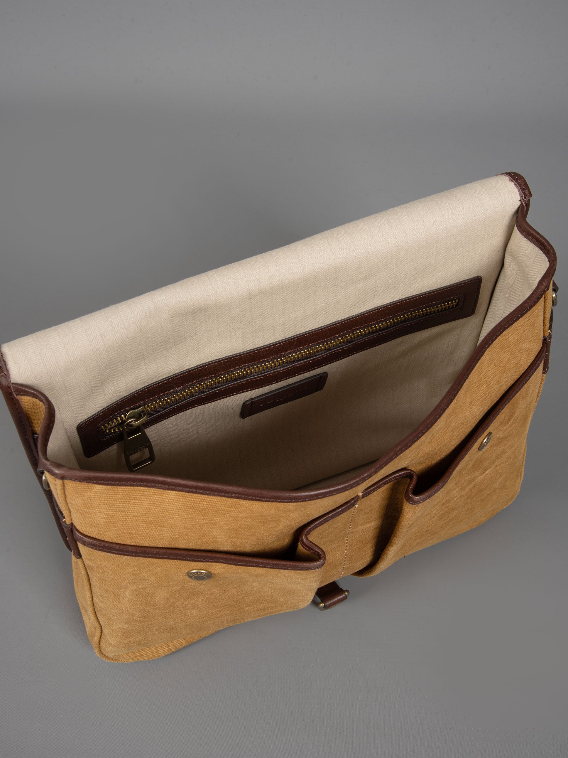 • Doppia tasca con bottone a pressione e tasca con zip e porta notebook o iPad.