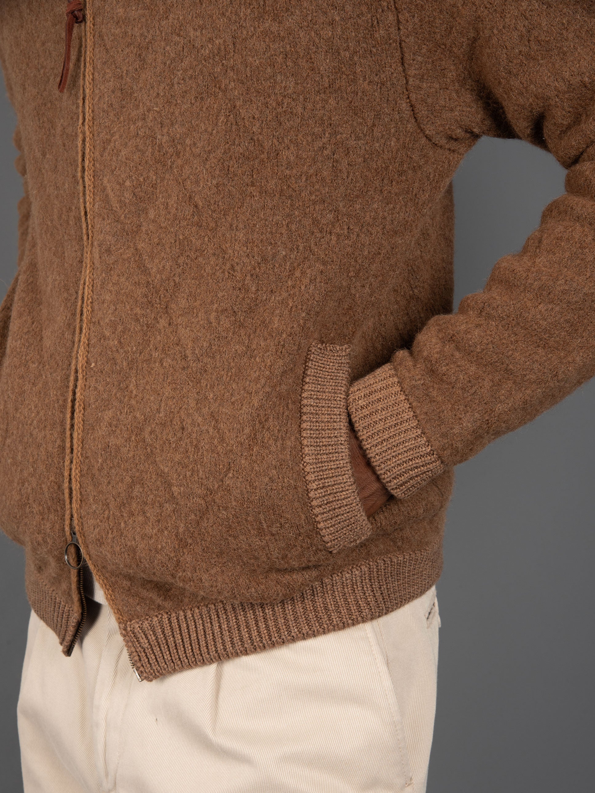- Giacca Bomber in lana Baby Camel, baby lamswool e cashwool.