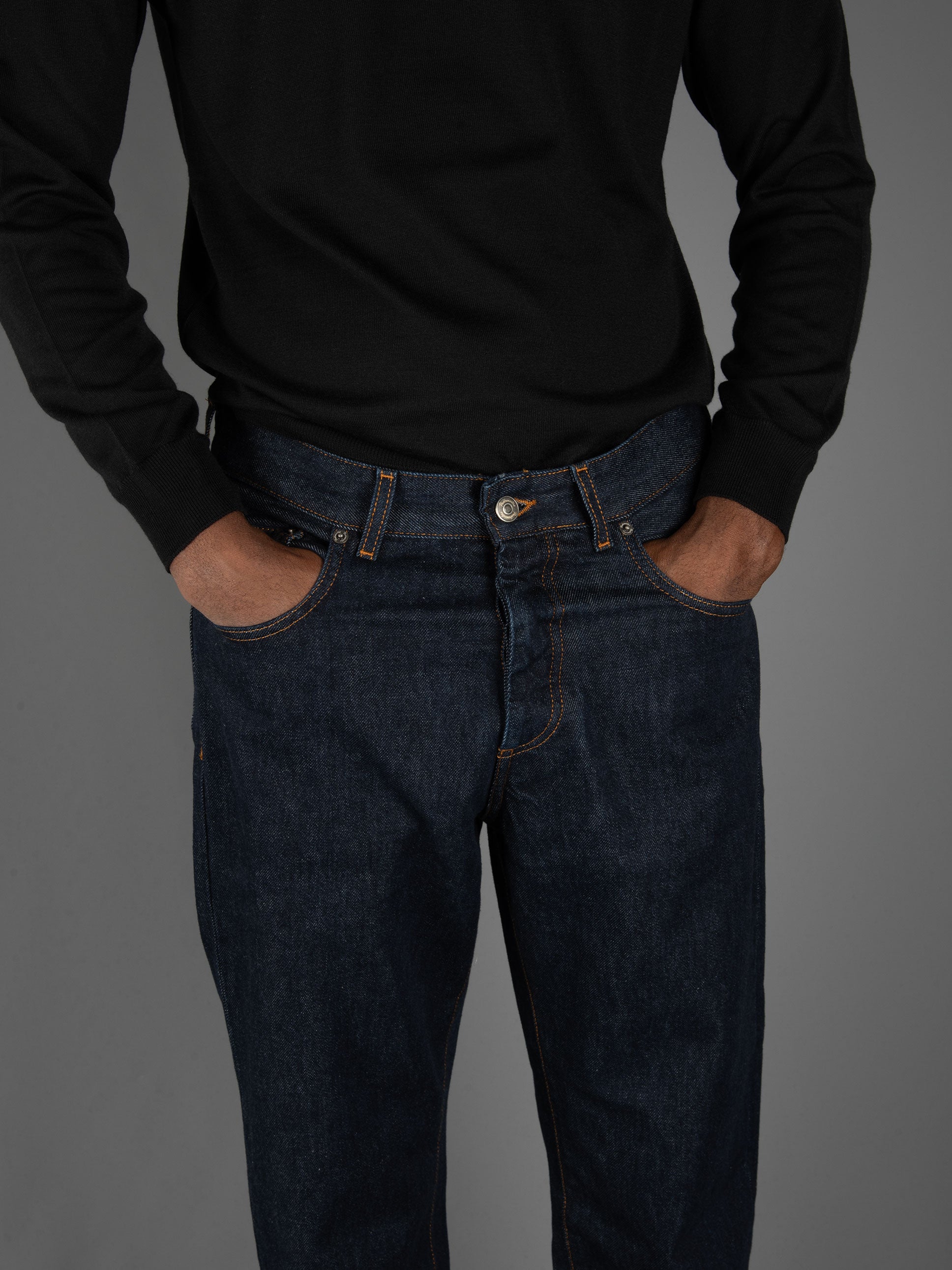 - Denim cinque tasche fermo.